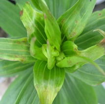 Trường hợp bệnh nặng, cây không có khả năng phục hồi và các lá nõn, nụ bị thối hoặc cháy khô (ảnh 3), nụ rụng, cây không còn khả năng sinh trưởng phát triển, cho hoa bình thường (bị biến dạng hay mất 1 hoặc vài cánh hoa) (ảnh 4).