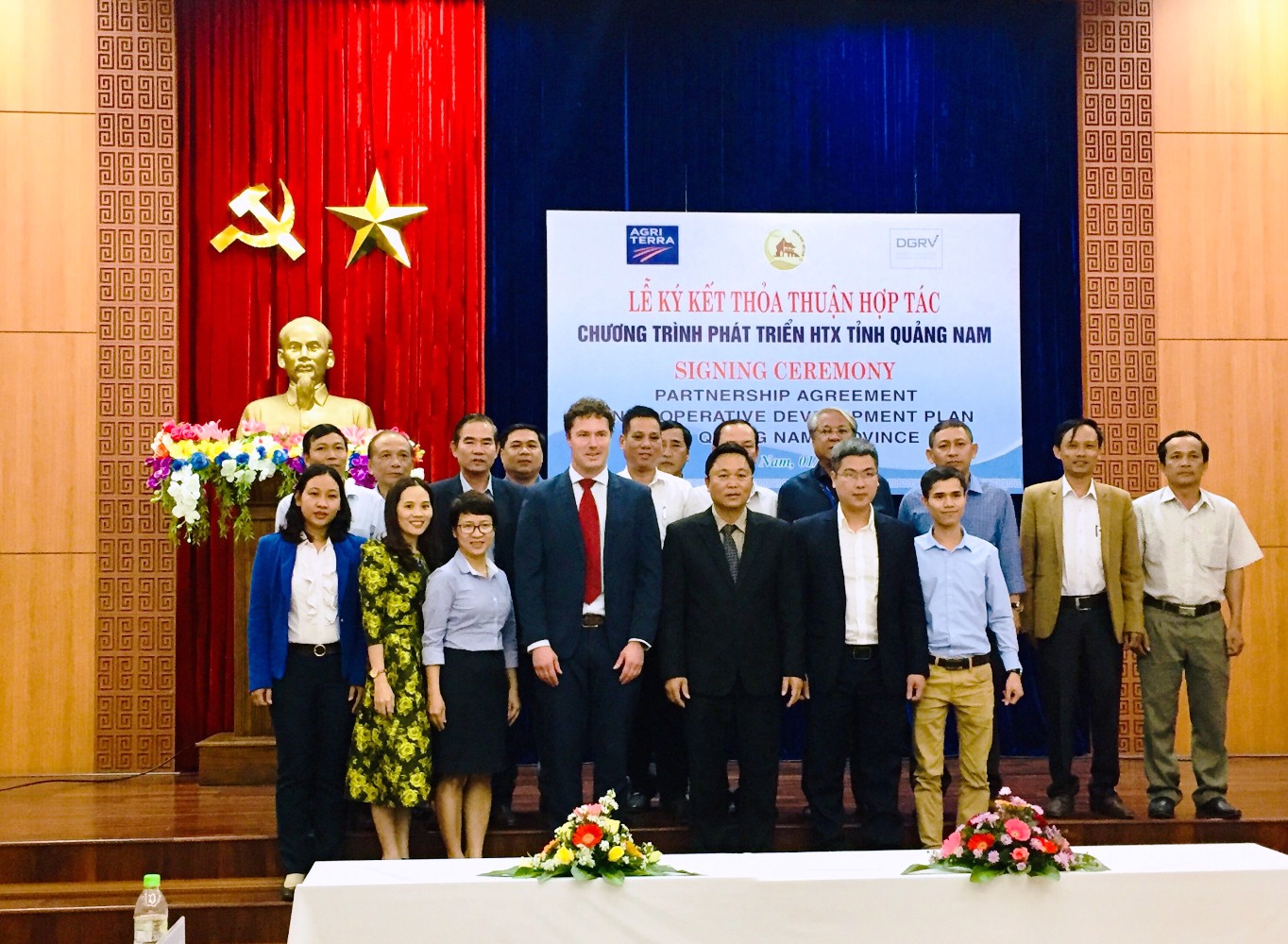 Phát biểu tại buổi lễ ký kết, Ông: Lê Trí Thanh - PCT UBND tỉnh cho biết, trong nhiều năm qua, tỉnh Quảng Nam đã có nhiều giải pháp, nhiều cơ chế để thúc đẩy phát triển lĩnh vực kinh tế Hợp tác xã (HTX) và đã đạt được những kết quả bước đầu. Tuy nhiên, so với yêu cầu của Tỉnh lĩnh vực này vẫn phải cần nhiều nguồn lực hơn. Trong đó, kinh nghiệm phát triển HTX của các nước như Đức, Hà Lan...là rất cần để Quảng Nam học hỏi. Vì vậy, qua ký kết hợp tác này hy vọng Quảng Nam sẽ nhận được sự hỗ trợ có hiệu quả của Tổ chức AGRITERRA và Tổ chức DGRV để đẩy mạnh phát triển HTX.