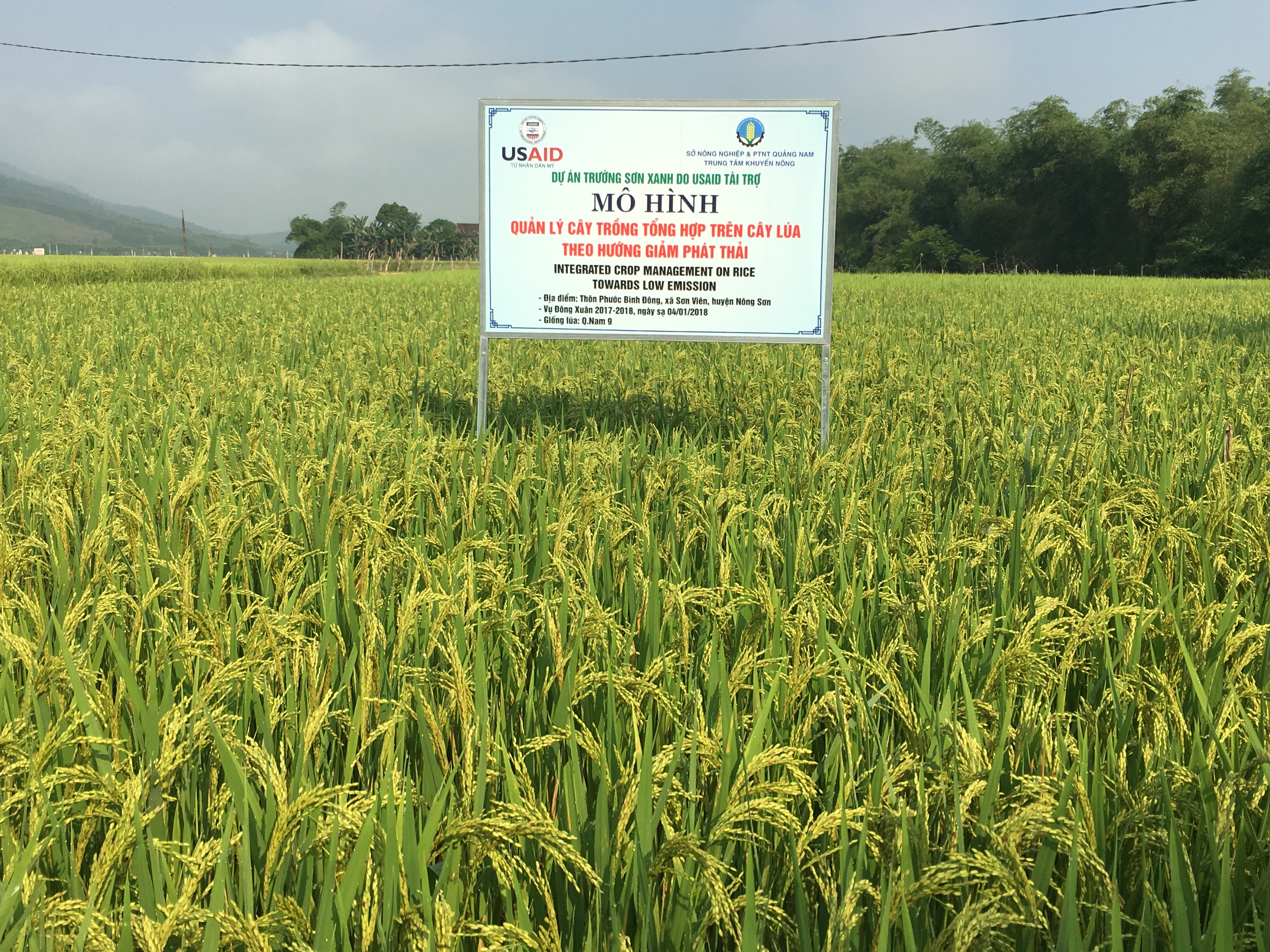 Vụ Đông Xuân năm 2017 – 2018, bằng nguồn tài trợ từ Dự án Trường Sơn Xanh tại Quảng Nam, Trung tâm Khuyến nông Quảng Nam phối hợp với Trung tâm Kỹ thuật Nông nghiệp huyện và chính quyền địa phương tổ chức mô hình đào tạo Quản lý cây trồng tổng hợp (ICM) trên cây lúa theo hướng giảm phát thải cho 120 học viên nông dân tại các xã Trà Giang, Trà Sơn (huyện Bắc Trà My) và xã Quế Lộc, Sơn Viên (huyện Nông Sơn). Qua gần 4 tháng triển khai thực hiện, kết quả mô hình đem lại được đánh giá là rất thuyết phục, đáp ứng mong đợi mà mục tiêu Dự án đề ra ban đầu.