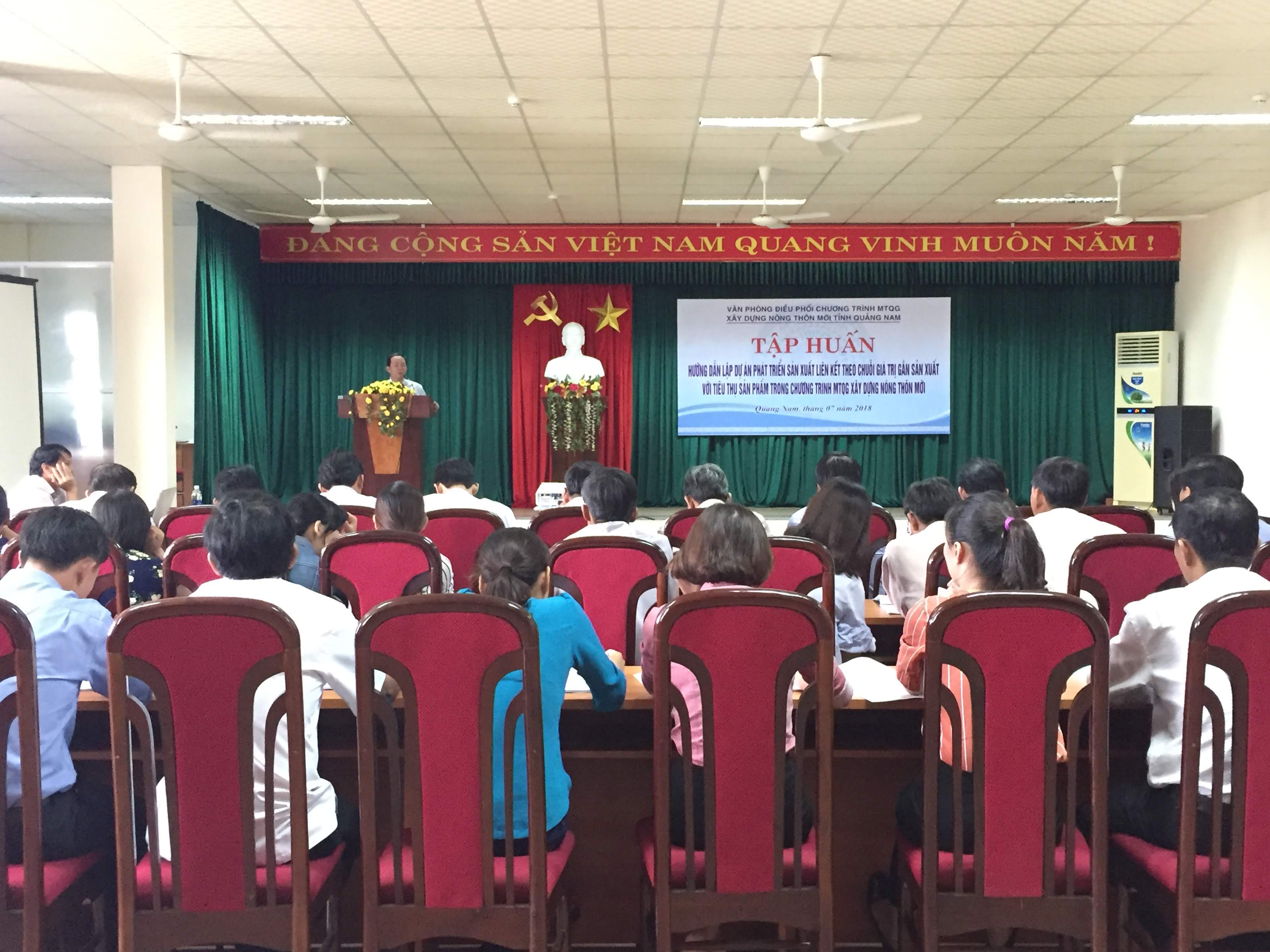 Tại lớp tập huấn các học viên được nghe các chuyên gia, giảng viên chính đến từ Trung tâm Khuyến nông Quảng Nam và Văn phòng Điều phối nông thôn mới trao đổi về các nội dung liên quan đến liên kết sản xuất, như: Giới thiệu, phân tích một số chuỗi giá trị đang triển khai trên địa bàn tỉnh; hướng dẫn một số định mức kinh tế - kỹ thuật và lập dự toán các mô hình/ dự án khuyến nông trong trồng trọt, chăn nuôi, nuôi trồng thủy sản, lâm nghiệp (bao gồm cây dược liệu và sản phẩm ngoài gỗ khác); Thông tin về các doanh nghiệp có khả năng hợp tác, liên kết sản xuất, tiêu thụ nông sản; Giới thiệu các yêu cầu của sản xuất nông sản gắn với thị trường, xây dựng thương hiệu, nhãn hiệu cho nông sản; Hướng dẫn xây dựng dự án, hợp đồng liên kết. Quy trình triển khai lập và phê duyệt danh mục dự án phát triển sản xuất liên kết theo chuỗi giá trị; Các nội dung, định mức liên quan đến dự án phát triển sản xuất liên kết theo chuỗi giá trị gắn sản xuất với tiêu thụ sản phẩm; Thanh quyết toán nguồn vốn, các biểu mẫu liên quan.