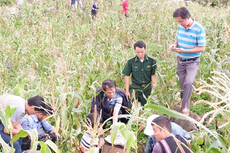 Lãnh đạo Trung tâm, lãnh đạo xã Ch' Om, Bộ đội biên phòng và đồng bào thăm, kiểm tra,