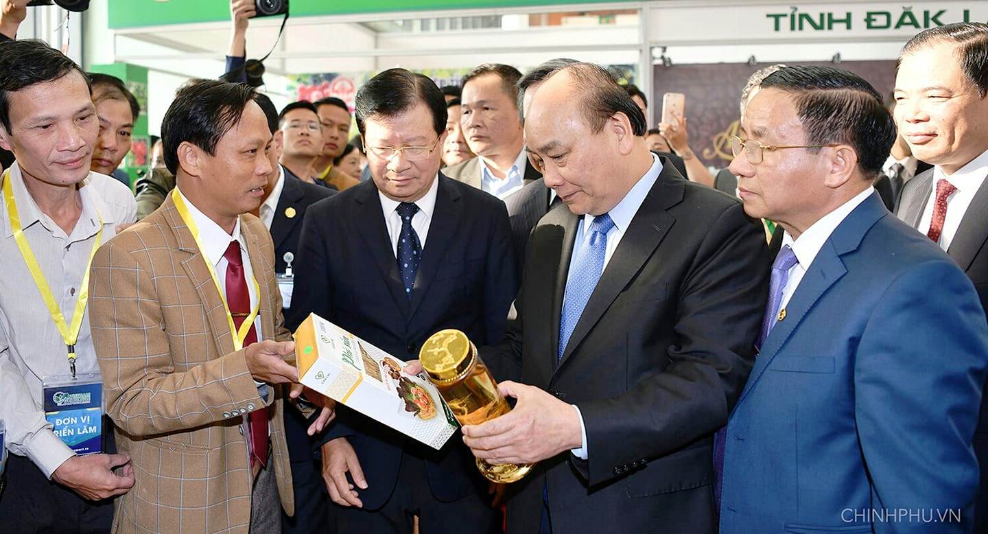 Thủ Tướng Nguyễn Xuân Phúc thăm gian triển lãm của Quảng Nam, giới thiệu với khách tham quan về