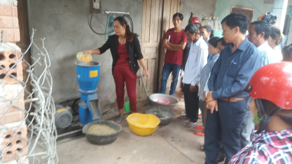 Việc khảo sát chọn hộ tham gia mô hình được tiến hành công khai, dân chủ và đảm bảo các tiêu chí: Mỗi hộ nuôi ít nhất là 100 con gà; có đủ điều kiện về chuồng trại, khu chăn nuôi đảm bảo vệ sinh môi trường; chủ động nguồn nguyên liệu sẵn có tại địa phương (lúa, sắn, bắp...) để chế biến thức ăn; hộ tham gia phải nhiệt tình, ham học hỏi và cam kết thực hiện đúng yêu cầu về kỹ thuật được ứng dụng trong mô hình. Trước khi nhập gà nuôi và nhận các vật tư thực hiện mô hình, tất cả các hộ được tập huấn hướng dẫn kỹ thuật và tham quan, khảo sát cơ sở chăn nuôi cũng như cung ứng máy nghiền, ép thức ăn. TRong quá trình thực hiện, cán bộ kỹ thuật trực tiếp hướng dẫn cho nông dân thực hiện tốt các biện pháp kỹ thuật như: Kỹ thuật chuẩn bị chuồng úm, kỹ thuật úm, làm vắc xin cho gà, kỹ thuật vận hành máy nghiền ép chế biến thức ăn, cách pha trộn, chế biến thức ăn, cách phòng trị một số bệnh thường gặp trên gà...