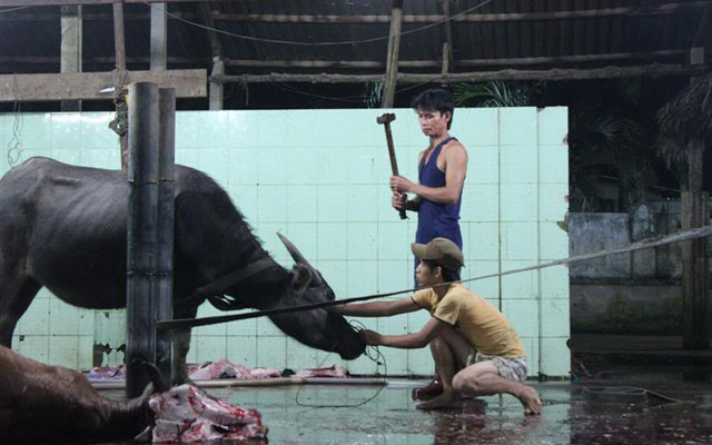 Ba là, phải gây ngất vật nuôi trước khi giết mổ