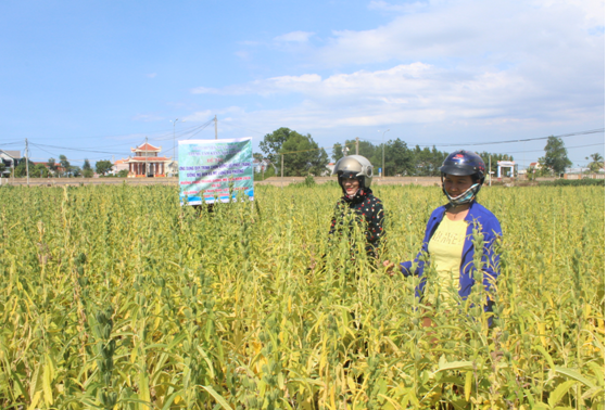 Từ mục tiêu đó, Thạc sĩ Dương Thị Kim Anh cùng cán bộ kỹ thuật nông nghiệp huyện Núi Thành điều tra đặc điểm chung, tình hình sản xuất, đặc tính giống mè và việc áp dụng kỹ thuật trong sản xuất mè tại địa phương để phục tráng giống mè đen, mè vàng, nghiên cứu xây dựng quy trình kỹ thuật. Qua 3 vụ Hè Thu (2017, 2018, 2019) triển khai đề tài phục tráng giống mè đen, mè vàng địa phương trong tình hình thời tiết tương đối thuận lợi, riêng vụ hè thu năm 2019, thời tiết cực đoan, nắng nóng gay gắt kéo dài, không có mưa nên việc bón thúc cho cây mè gặp nhiều khó khăn. Tuy nhiên, với việc áp dụng các quy trình kỹ thuật sản xuất chặt chẽ, việc phục tráng giống mè vàng, mè đen địa phương đã đem lại kết quả khả quan. Về phục tráng giống mè đen ở thế hệ G2 (vụ thứ 3 – vụ hè thu 2019), đề tài chọn được 2 kiểu hình: Mè đen 4 khía, trung bình mỗi nách lá từ 2-3 quả, chiều cao dao động từ 85-95cm, số quả trên cây dao động từ 30-50 quả/cây, năng suất 8-9 tạ/ha; mè đen 6-8 khía, trung bình mỗi nách từ 1-3 quả, chiều cao dao động 100-101cm, số quả trên cây dao động từ 30-50 quả/cây, năng suất 9-10 tạ/ha. Về phục tráng giống mè vàng thế hệ G2 (vụ thứ 3): vụ Hè thu 2019 gieo 13 dòng được chọn lọc ở thế hệ G1 thành 13 dòng riêng biệt trên đồng ruộng, tiến hành theo dõi trong suốt quá trình sinh trưởng phát triển và loại bỏ dòng sinh trưởng, phát triển kém, qua đó, đề tài chọn được giống mè vàng 6-10 khía, trung bình mỗi nách lá từ 1-3 quả, chiều cao dao động từ 140-155cm, số quả dao động từ 40-60 quả/cây, năng suất 7,5 tạ/ha.