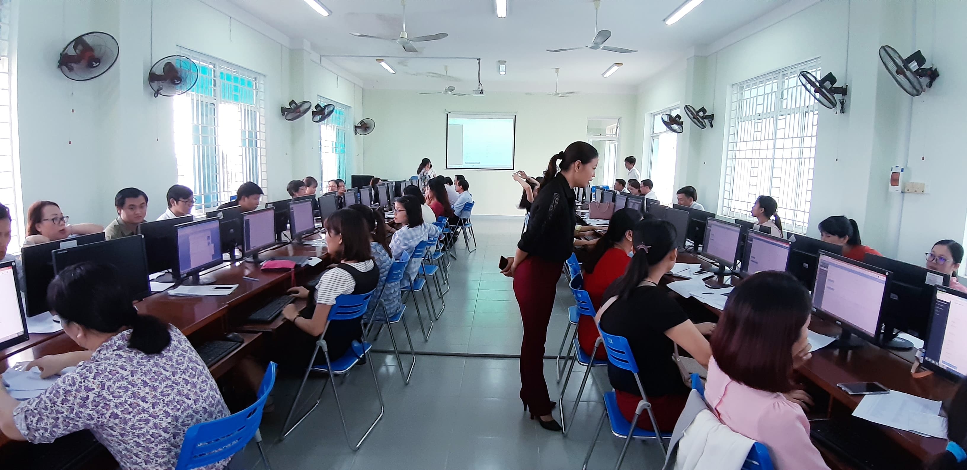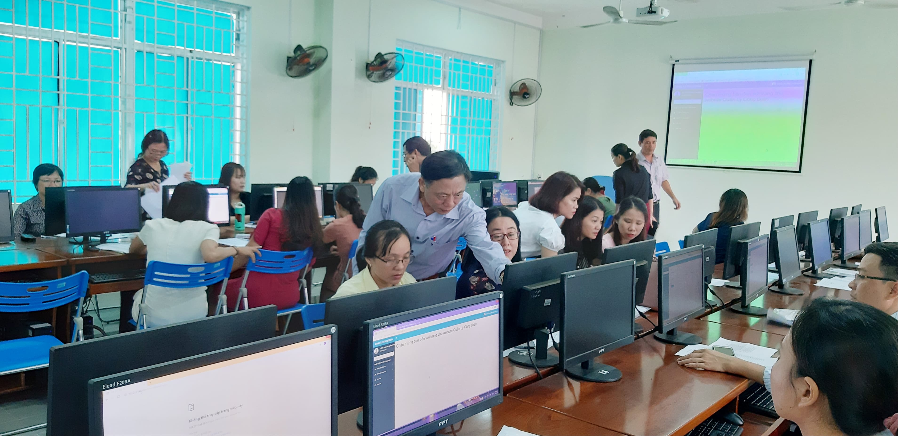 Giảng viên hướng dẫn các học viên thao tác vận hành Phần mềm quản lý đoàn viên