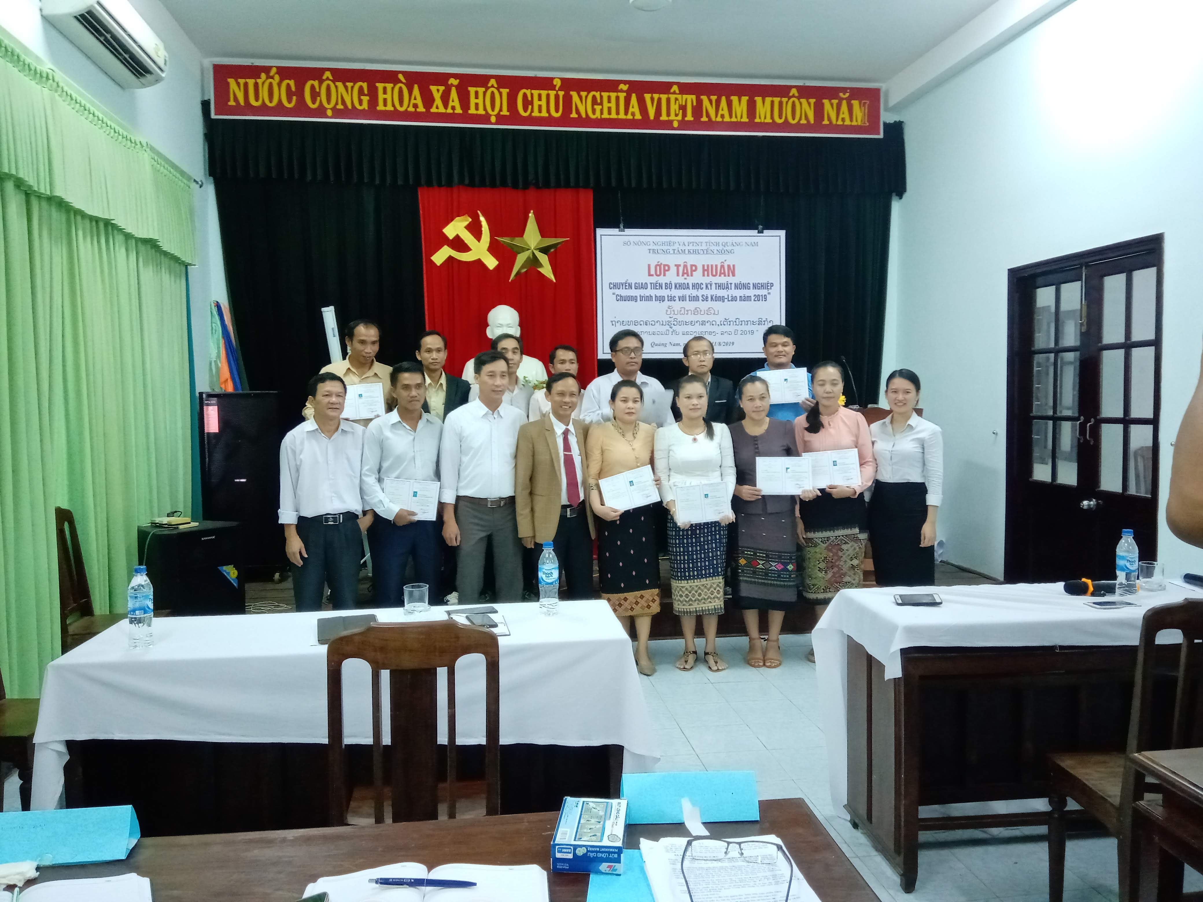 Trong 13 ngày (từ 29/07 - 10/08/2019) Trung tâm Khuyến nông đã tổ chức tập huấn chuyển giao tiến bộ khoa học kỹ thuật nông nghiệp cho 12 cán bộ nông nghiệp của tỉnh Sê Koong - nước CHDCND Lào.