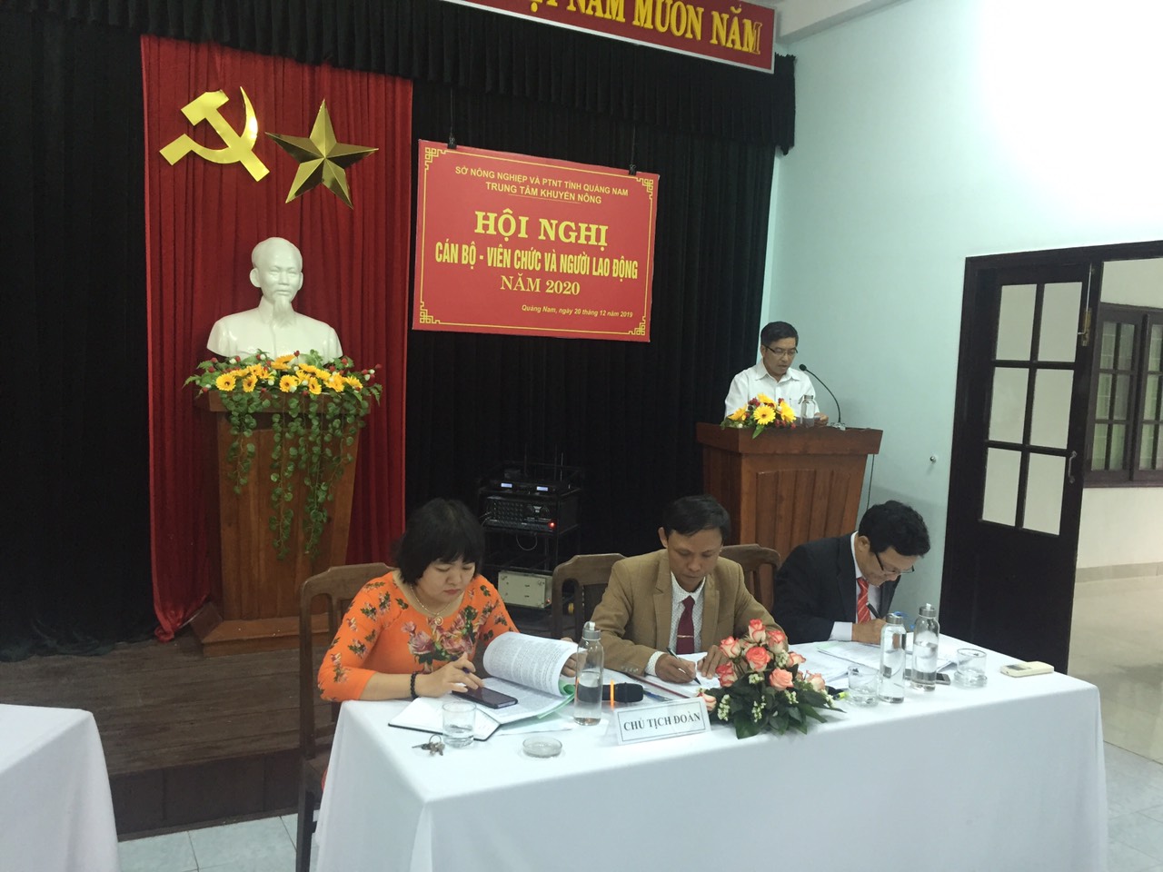 Ngày 20/12/2019 Trung tâm Khuyến nông Quảng Nam tiến hành tổ chức Hội nghị CC-VC và người lao động năm 2020. Tham gia hội nghị có đầy đủ các đồng chí là công chức, viên chức và người lao động của Trung tâm Khuyến nông. Hội nghị được đón tiếp đại biểu: Ông Lê Hữu Hà – Phó phòng TC-CB Sở Nông nghiệp & PTNT Quảng Nam.