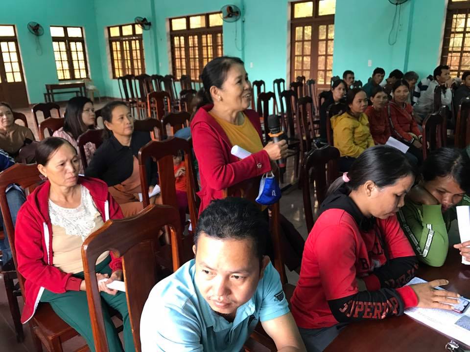 Chị Nguyễn Thị Xuân- nông dân xã Tam Trà phát biểu tại hội thảo tổng kết