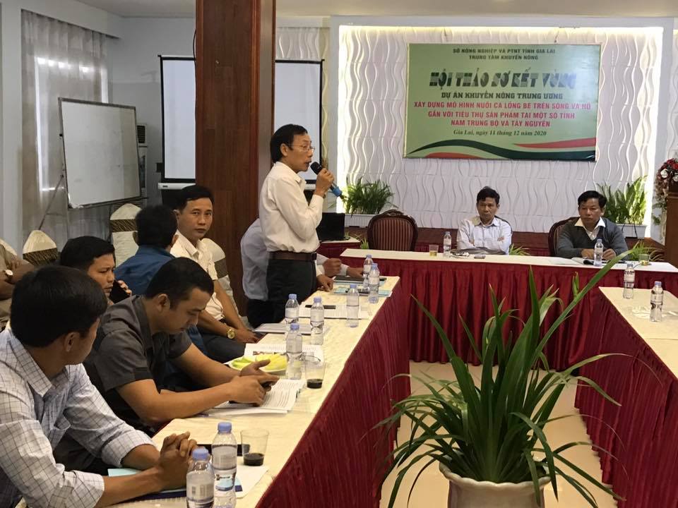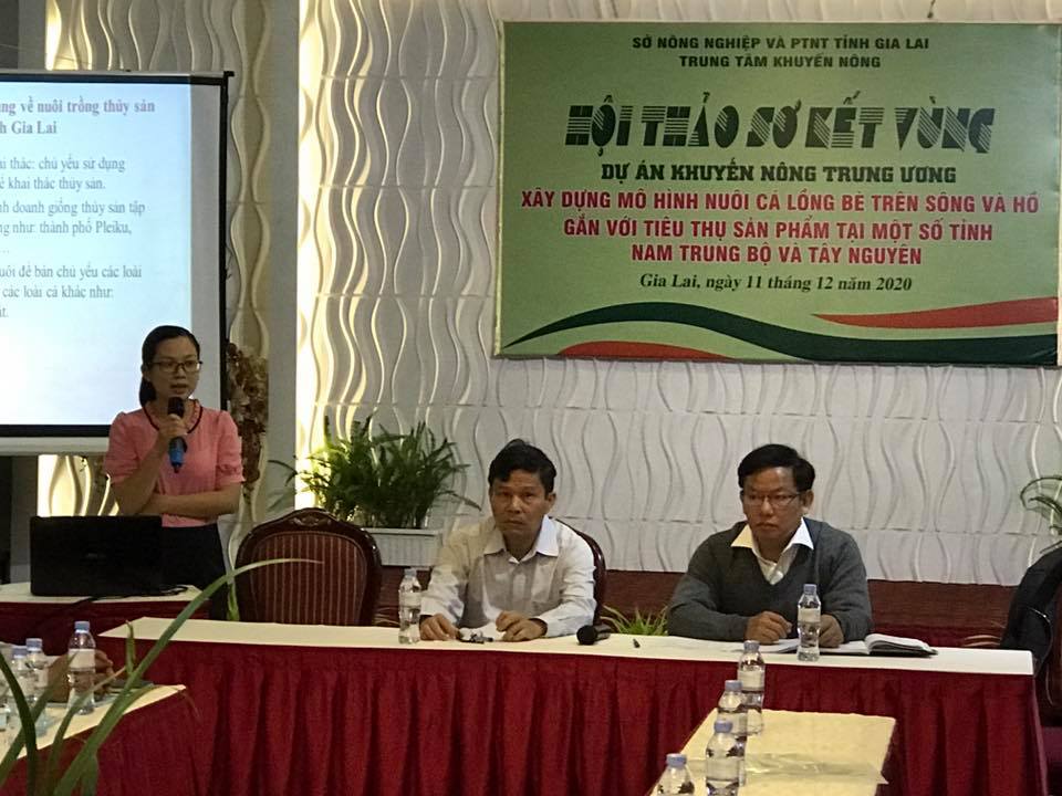 Tham dự hội thảo có ông Trịnh Quốc Việt- Giám đốc Trung tâm Khuyến nông Gia Lai, ông Lê Hữu Hà- Phó Giám đốc Trung tâm Khuyến nông Quảng Nam (đồng chủ trì); Cán bộ khuyến nông, các đơn vị, HTX sản xuất kinh doanh cá nước ngọt; cùng hơn 60 nông dân nuôi cá lồng bè các tỉnh Gia Lai, Quảng Nam, Đăk Lăk, v.v…