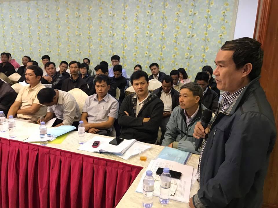 Ông Phạm Hữu Phước- Giám đốc Trung tâm Giống Thủy sản tỉnh Gia Lai phát biểu thảo luận. Ảnh: Phan Văn Bách