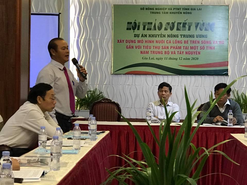 Trong phần thảo luận, các ý kiến của người dân nuôi cá các tỉnh Gia Lai, Quảng Nam, Đăk Lăk, Trung tâm Giống Thủy sản tỉnh Gia Lai, … đều tập trung giải quyết các khó khăn hiện nay trong nuôi cá lồng bè, đó là: kết nối tiêu thụ sản phẩm, chọn đối tượng cá nuôi lồng bè cho phù hợp với điều kiện cụ thể, kết nối cung ứng nguồn cá giống đảm bảo chất lượng. Tại hội thảo các đại biểu cũng đã trao đổi, chia sẽ các kinh nghiệm về kỹ thuật nuôi cá, quản lý hữu ích, tận dụng nguồn thức ăn sẵn có tại phương để giảm chi phí sản xuất.