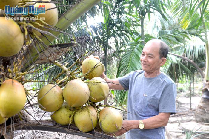 Hiện nay, nhiều cây dừa cho quả, đến kỳ thu hoạch, thương lái đến “đặt mua tại vườn”. Tuy ban đầu thu nhập chưa cao, nhưng đó là thành quả mà ông đạt được sau nhiều năm gây trồng;
