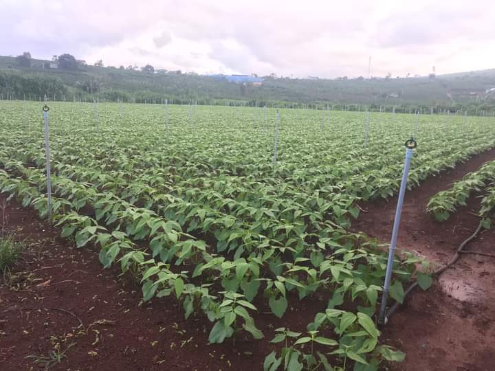 Mô hình Đậu xanh được lắp đặt hệ thống tưới nước nhỏ giọt kết hợp với hệ thống tưới nước phun sương