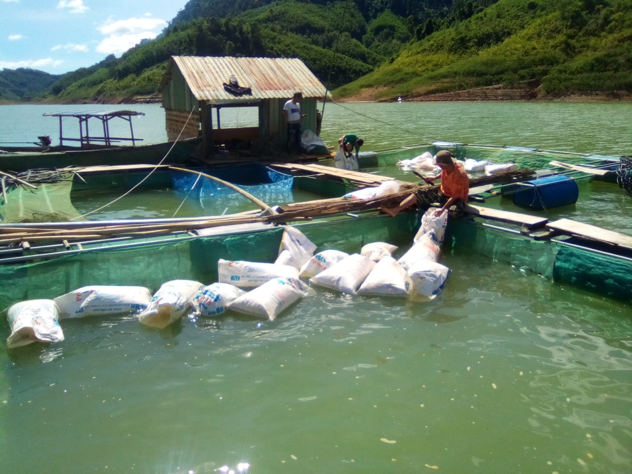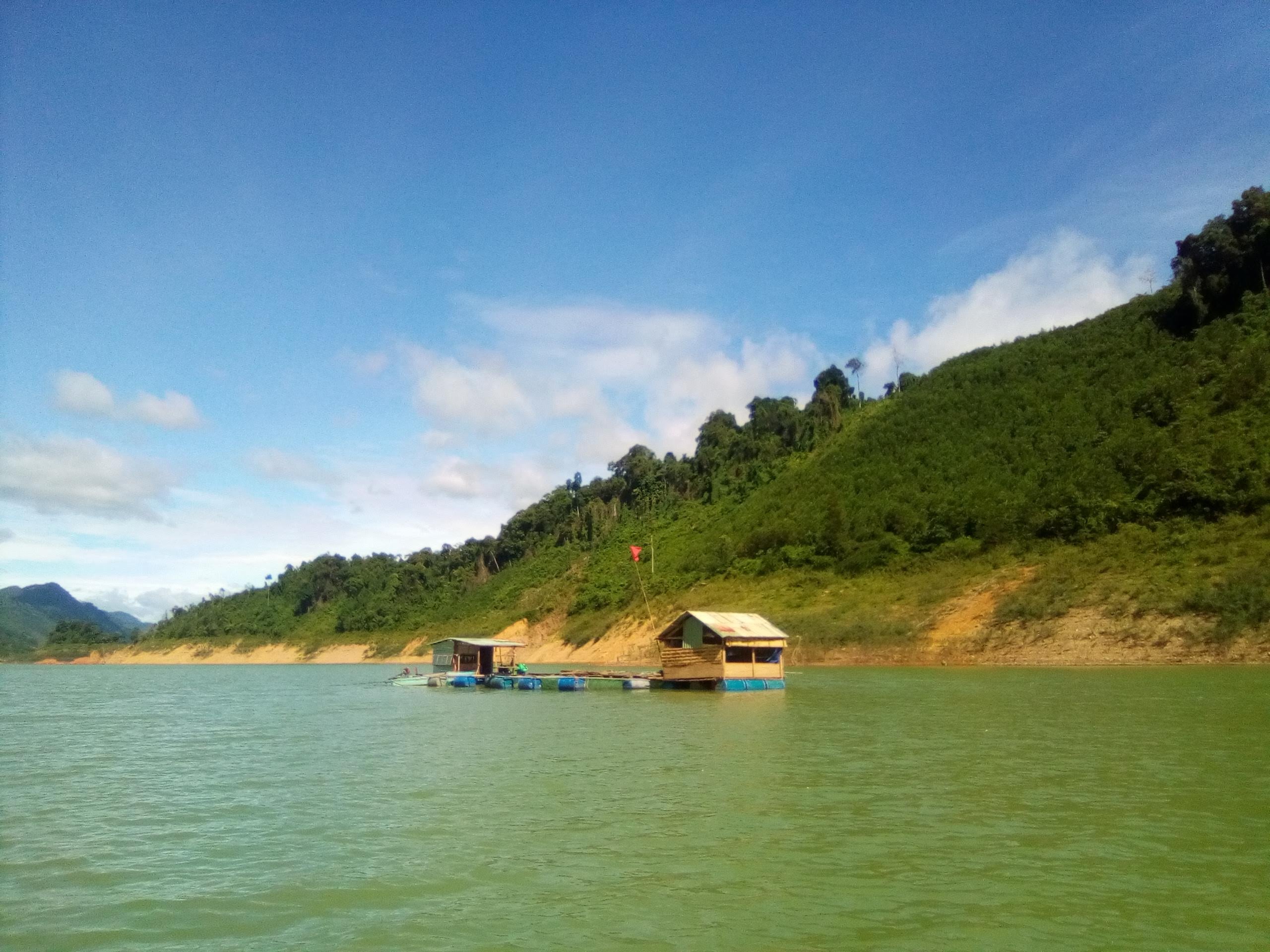 Khu vực nuôi cá lồng bè trên hồ thuỷ điện A Vương