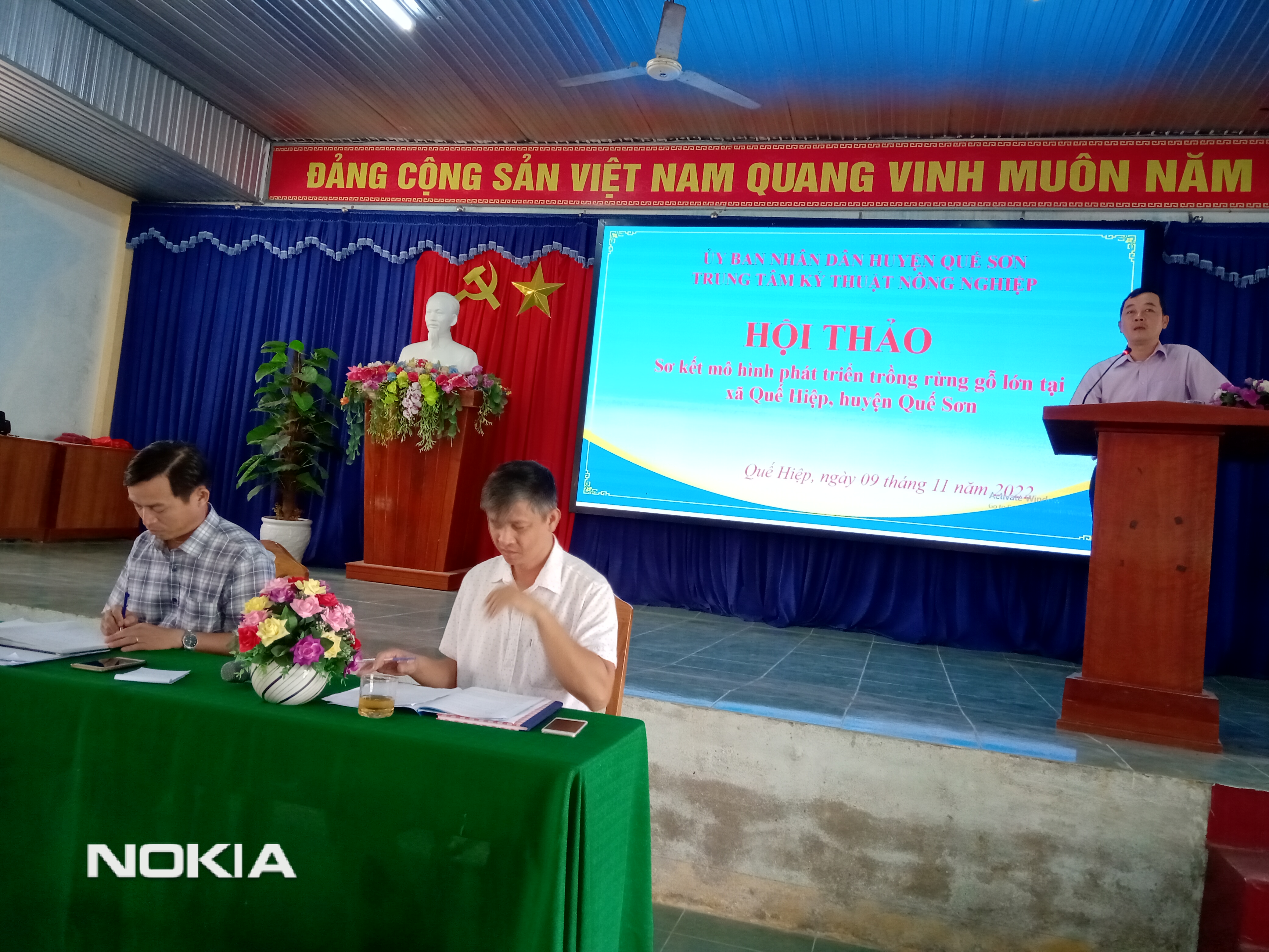Hình 1: Toàn cảnh hội thảo, sơ kết phát triển trồng rừng gỗ xã Quế Hiệp