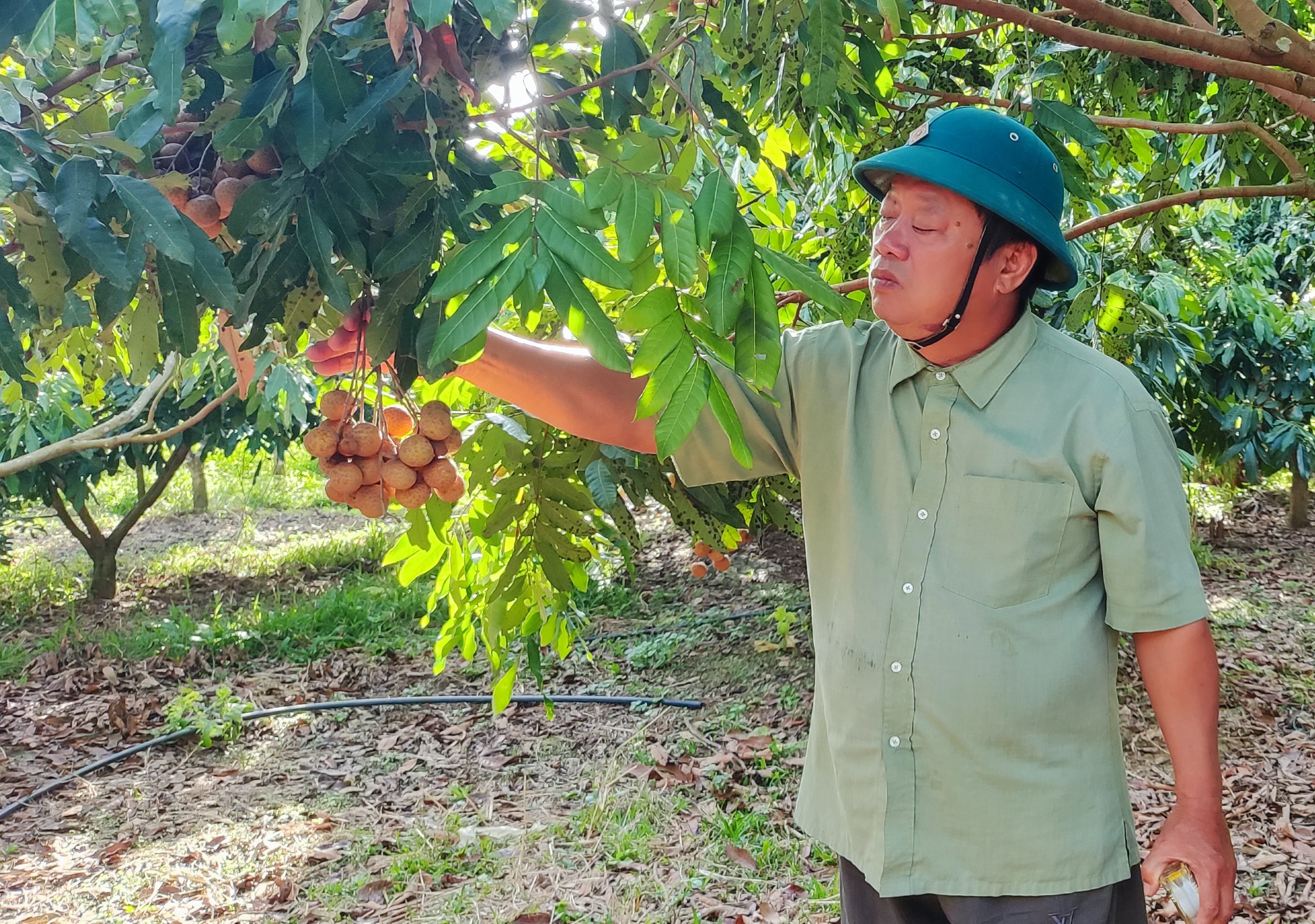 Hình 1: Ông Phạm Minh Tuấn kiểm tra tỷ lệ chín của vườn nhãn trước khi thu hoạch