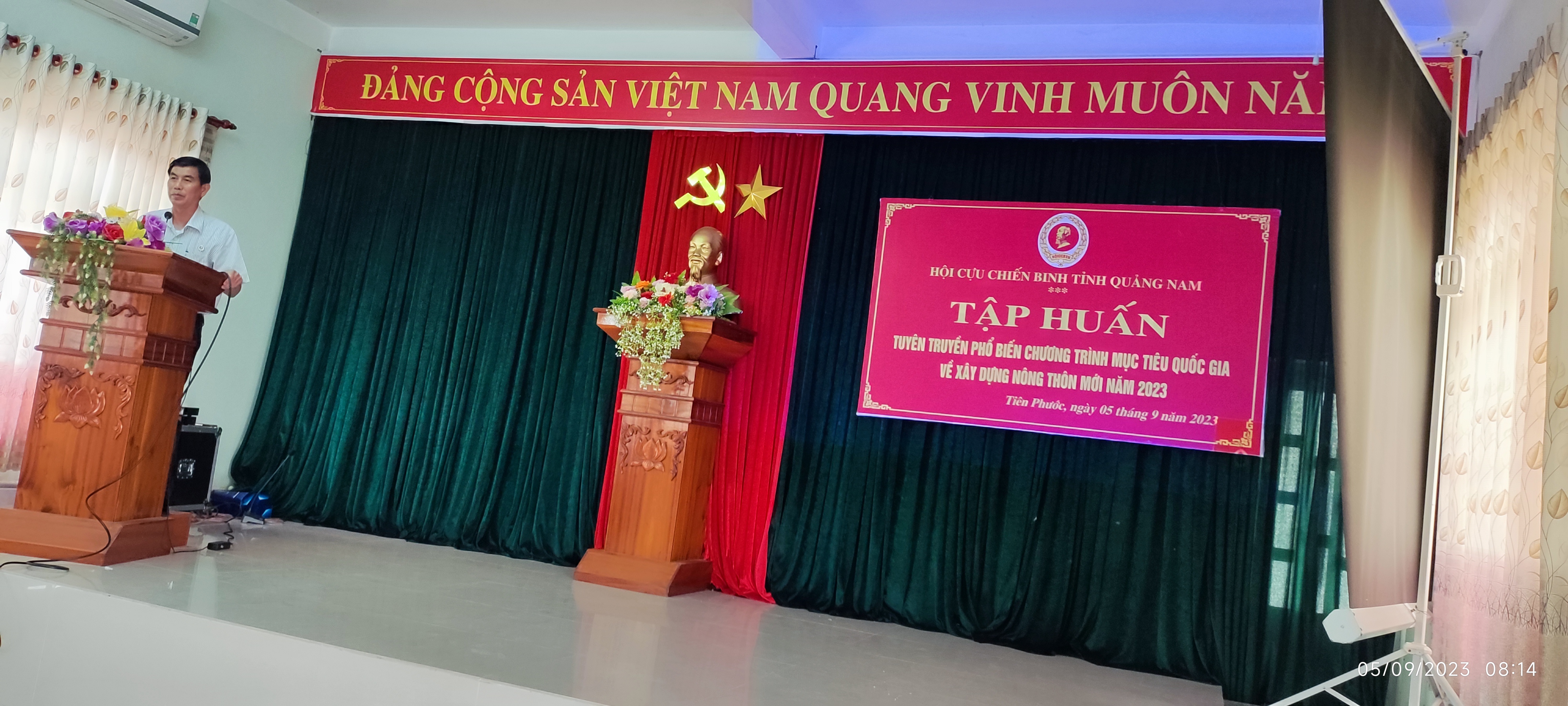 Phát biểu chỉ đạo tại lớp tập huấn, Phó Chủ tịch Hội CCB tỉnh Quảng Nam Bùi Văn Trí đánh giá rất cao sự có mặt đông đủ của các học viên tham gia lớp tập huấn. Việc tổ chức lớp tập huấn nhằm trang bị một cách có hệ thống các nội dung, phương pháp liên quan về chương trình mục tiêu quốc gia giai đoạn 2021-2025, giúp cán bộ Hội, Chi Hội nắm bắt đầy đủ hơn, hiểu sâu hơn, có tư duy và phương pháp tốt hơn để triển khai và tuyên truyền, vận động nông dân thực hiện.