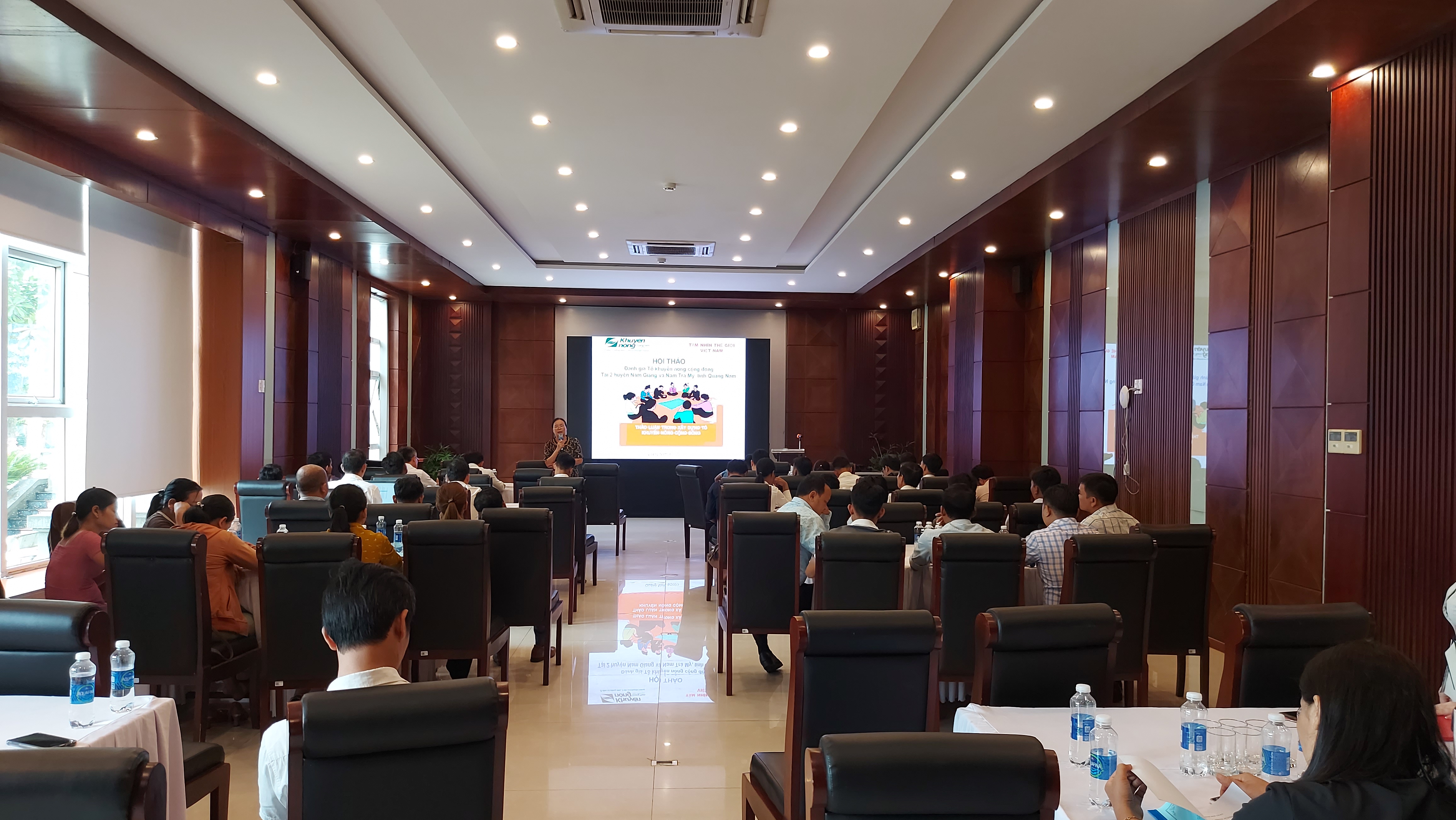 Tham dự Hội nghị có Bà Lương Thị Thuỷ - Giám đốc Trung tâm Khuyến nông Quảng Nam; Ông Vòng Thế Vinh đại diện tổ chức tầm nhìn thế giới vùng miền nam và gần 50 đại biểu tham dự đến từ các phòng thuộc Trung tâm Khuyến nông Quảng Nam, phòng nông nghiệp, Trung tâm Kỹ thuật nông nghiệp, Lãnh đạo và các thành viên BQLDA, đại diện văn phòng chương trình vùng tại 02 huyện Nam Giang và Nam Trà My. Tại Hội thảo, Bà Lương Thị Thuỷ - Giám đốc Trung tâm Khuyến nông Quảng Nam – chủ trì Hội thảo khái quát một số nội dung liên quan đến công tác xây dựng hệ thống tổ Khuyến nông cộng đồng theo Quyết định số 2396/QĐ-UBND ngày 14/9/2022 của UBND tỉnh Quảng Nam, tình hình triển khai thành lập trên địa bàn tỉnh, các văn bản hướng dẫn của các cơ quan có thẩm quyền, những khó khăn, vướng mắc cần tháo gỡ và định hướng hoạt động trong thời gian đến để tổ khuyến nông cộng đồng hoạt động có hiệu quả.