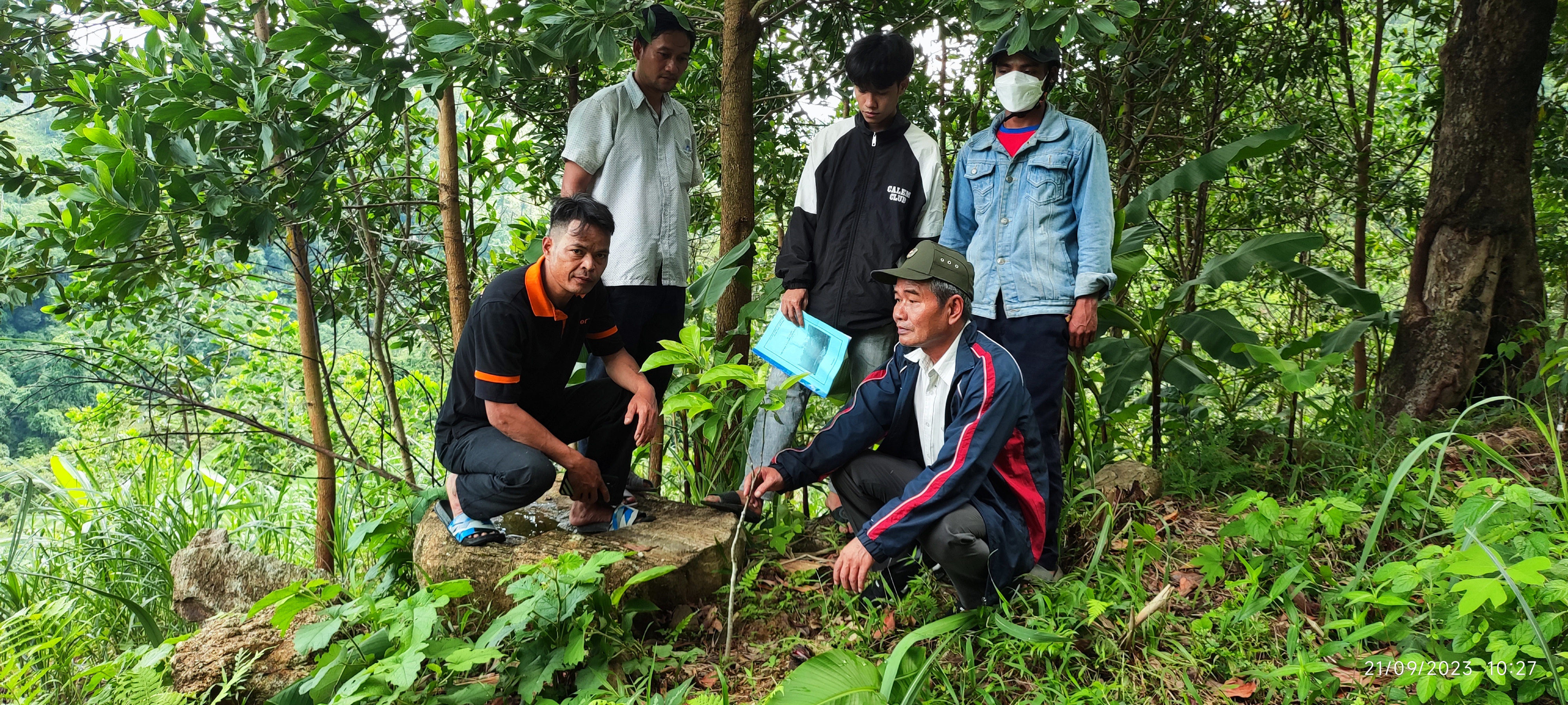 Hình 1: Quang cảnh lớp tập huấn chăm sóc mô hình hỗn giao giổi xen keo lai tổ chức tại thôn 1 xã Trà Dơn