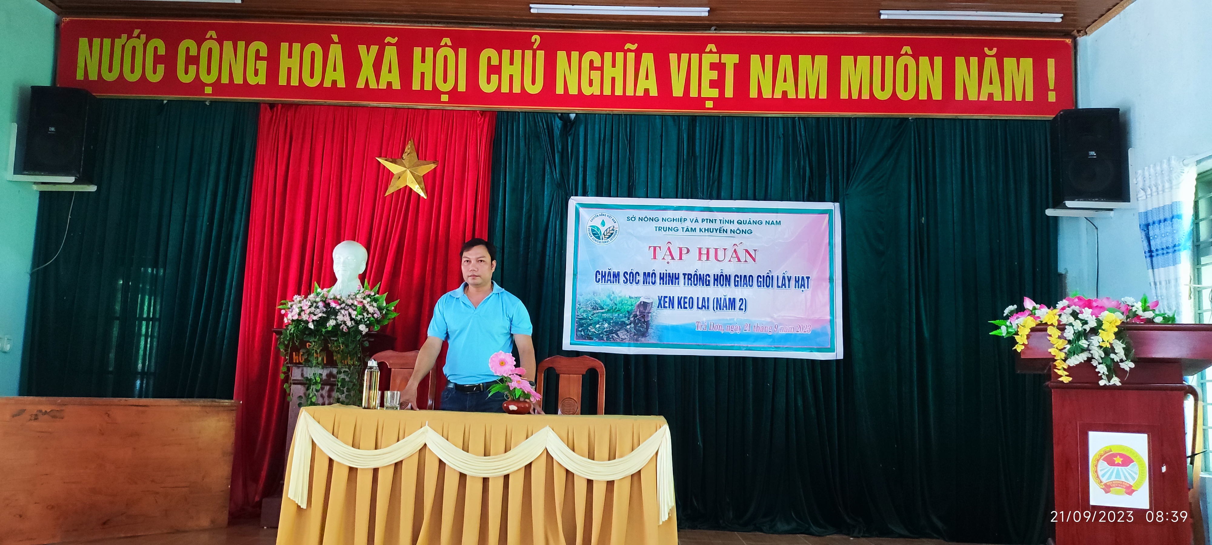 Tham dự lớp tập huấn có lãnh đạo UBND xã, cán bộ nông lâm nghiệp xã, Bí thư chi bộ, trưởng thôn cùng 30 nông dân tham gia mô hình và các hộ dân có nhu cầu làm kinh tế rừng trên địa bàn thôn 1 xã Trà Dơn. Giảng viên truyền đạt nội dung lớp tập huấn là cán bộ Phòng kỹ thuật - Trung tâm Khuyến nông.
