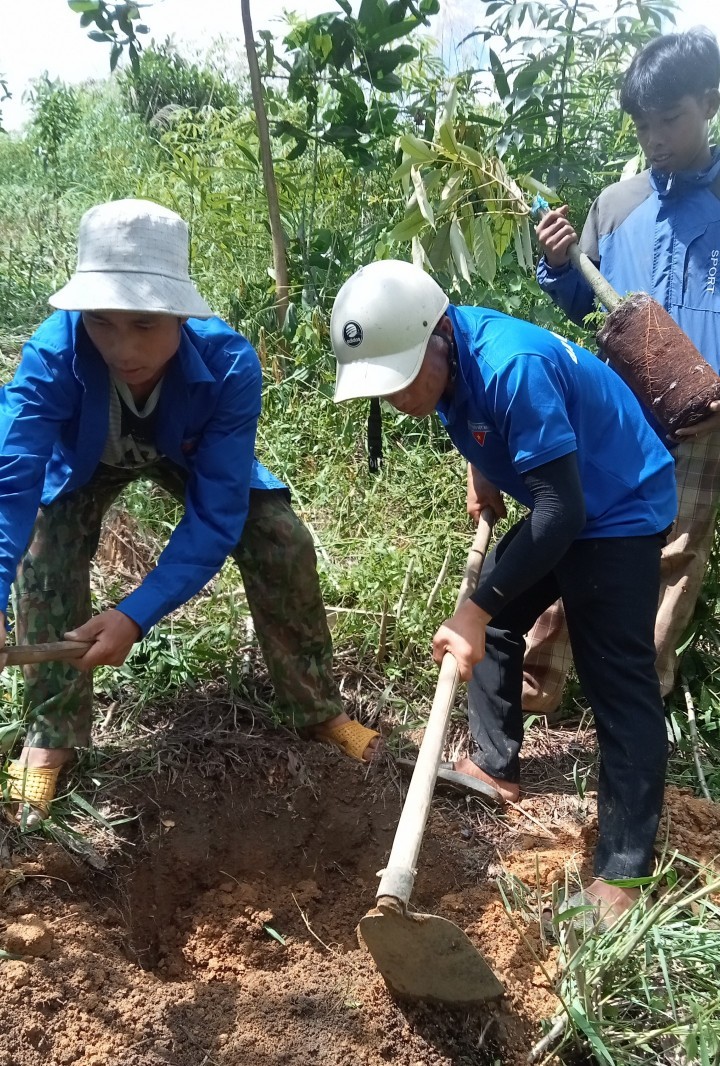 Hình ảnh Đoàn thanh niên ra quân tham gia trồng cây cho hộ tham gia mô hình