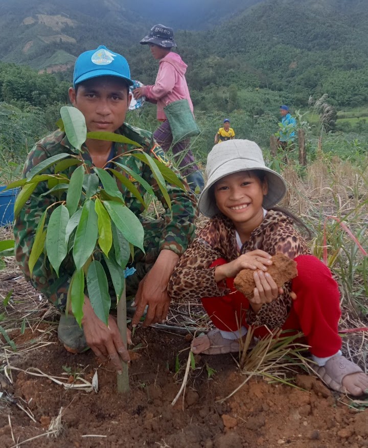 Hình ảnh người dân tham gia mô hình trồng cây Sầu riêng
