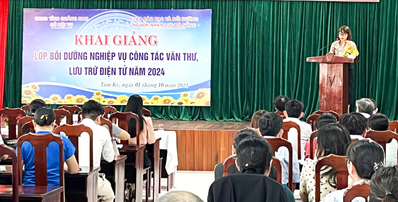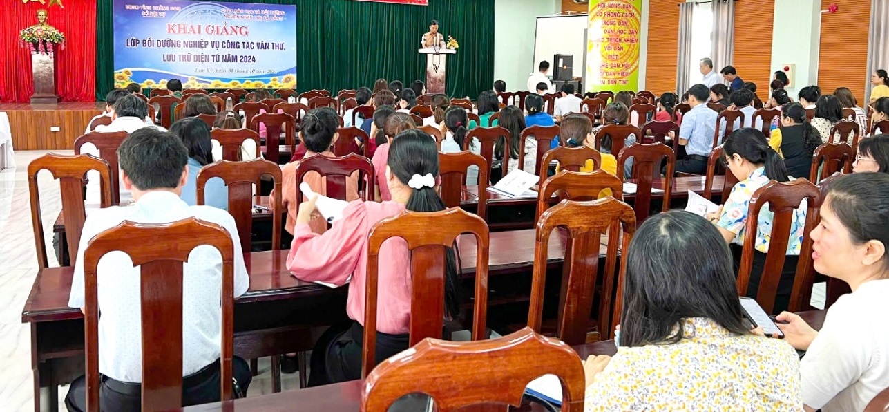Tham dự lớp bồi dưỡng nghiệp vụ công tác văn thư, lưu trữ điện tử năm 2024 với 200 học viên là cán bộ, công chức, viên chức đến từ các Sở, Ban, Ngành trên địa bàn tỉnh Quảng Nam.