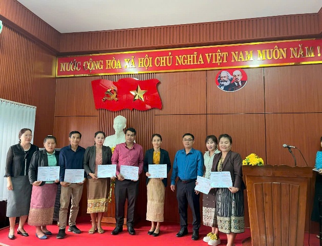 Hoàn thành khóa học cho Đoàn công tác Sở Nông lâm nghiệp tỉnh Sê Kông (Ảnh: Đặng Ngọc Sơn)
