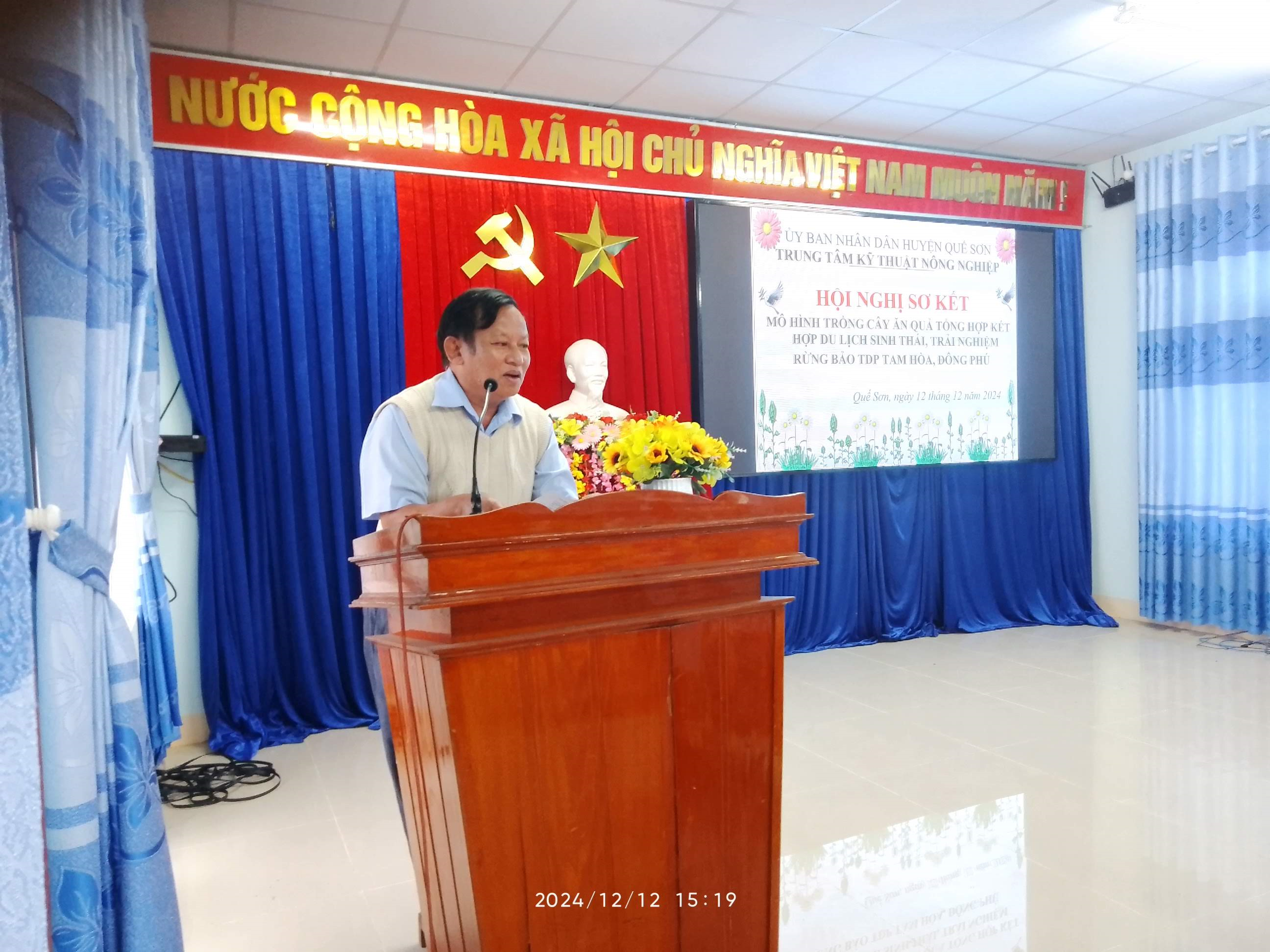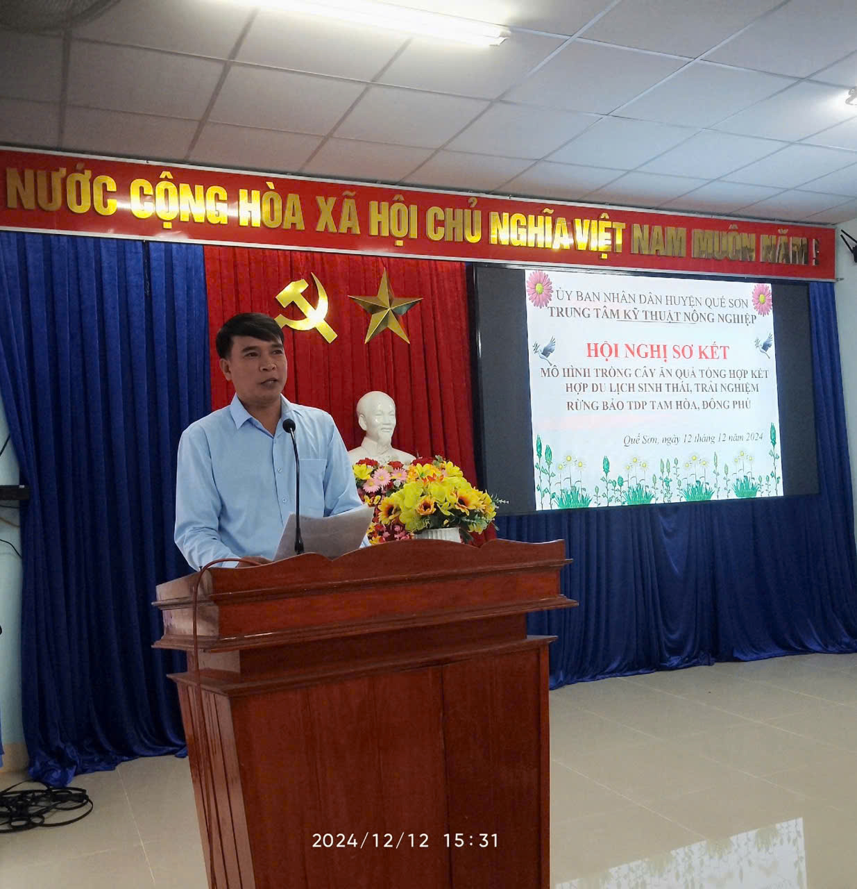 Ngày 12/12/2024, Trung tâm kỹ thuật nông nghiệp huyện Quế Sơn tổ chức hội nghị sơ kết mô hình: Trồng cây ăn quả tổng hợp gắn với du lịch sinh thái, trải nghiệm tại khu Rừng Bảo, tổ dân phố Tam Hòa, thị trấn Đông Phú, huyện Quế Sơn;