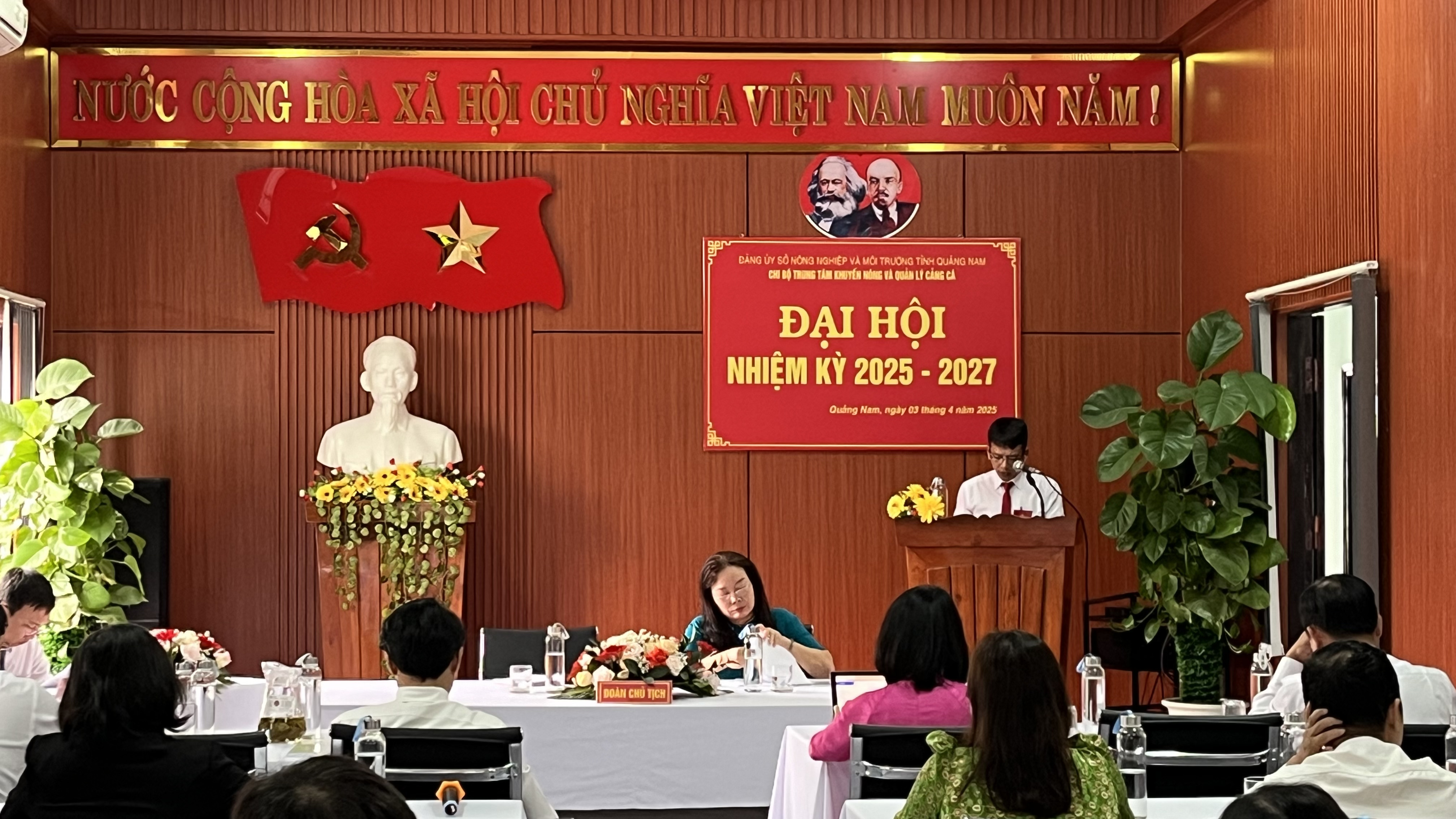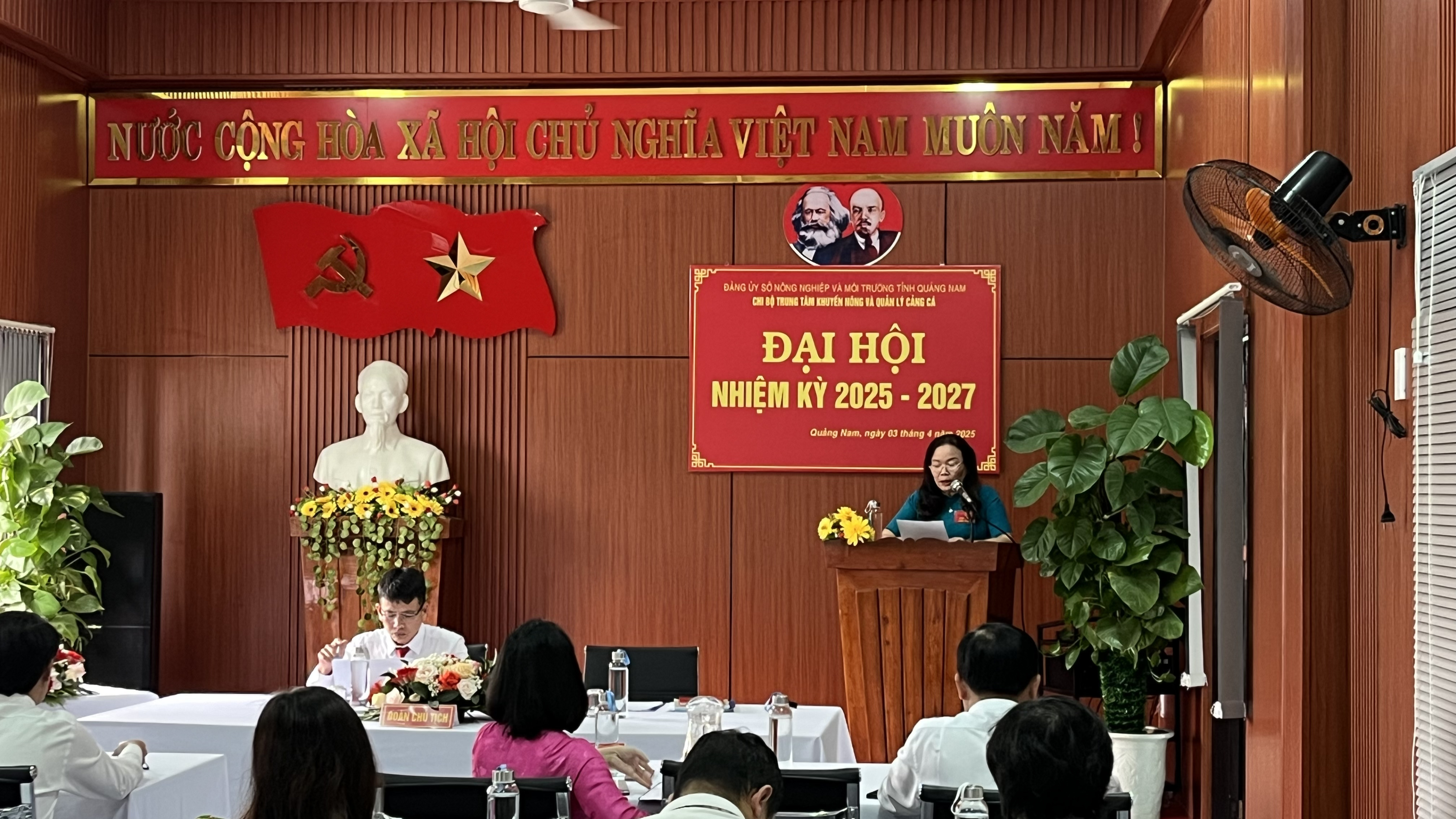 Đến dự và chỉ đạo Đại hội có đồng chí Lê Thủy Trinh – Ủy viên Ban chấp hành Đảng ủy, Phó Giám đốc Sở Nông nghiệp và Môi trường Quảng Nam; các đồng chí cấp ủy Lãnh đạo Trung tâm, đại diện quần chúng ưu tú cùng toàn thể 30 đảng viên Chi bộ Trung tâm Khuyến nông và Quản lý Cảng cá Quảng Nam.