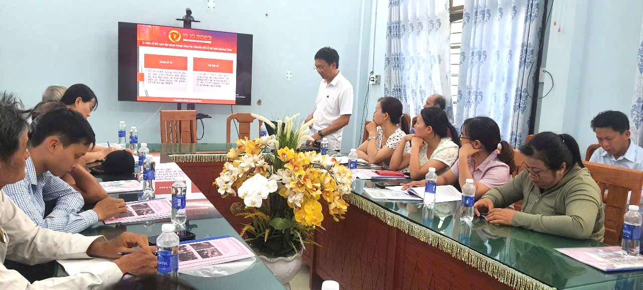 Hình 2: Báo cáo viên tập huấn chuyên đề chuyển đổi số trong nông nghiệp tại xã Đại Phong, huyện Đại Lộc