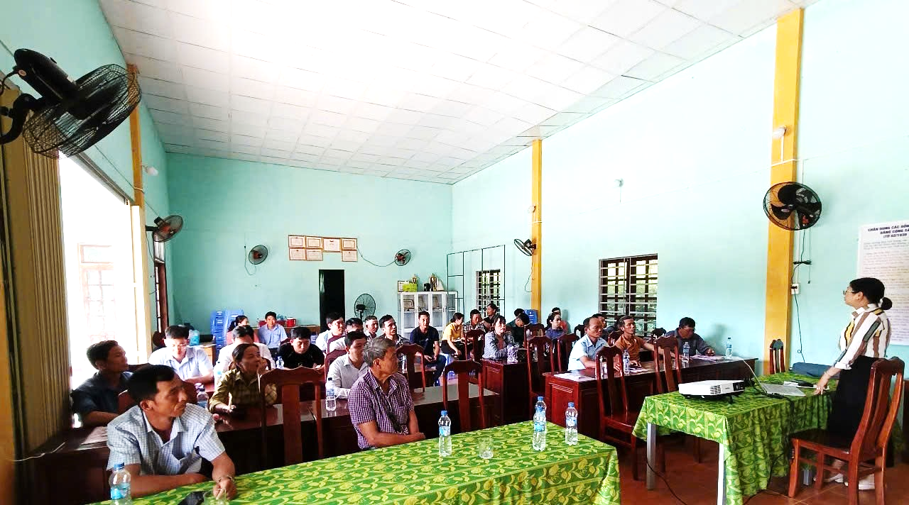 Hình 3: Báo cáo viên tập huấn chuyên đề tiến bộ khoa học kỹ thuật trong trồng trọt tại xã Tam Thạnh, huyện Núi Thành