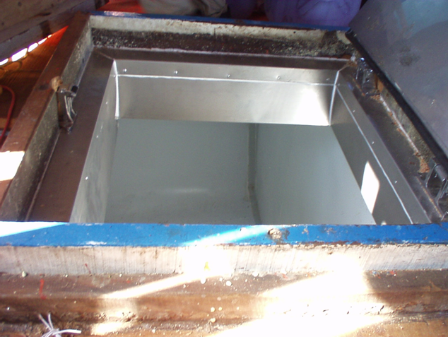 Sau khi được phun đầy PU foam vào khoảng trống ở xung quanh hầm bảo quản, tiến hành bọc inox 304 vào vách hầm để sản phẩm bảo quản không tiếp xúc với ván vỏ tàu cũng như với vật liệu PU foam nhằm đảm bảo vệ sinh an toàn thực phẩm cũng như đảm bảo khả năng giữ nhiệt của hầm tàu.