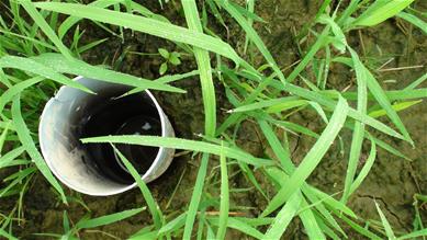 Dùng ống nhựa dài 20 cm có đục lỗ xung quanh đóng xuống ruộng