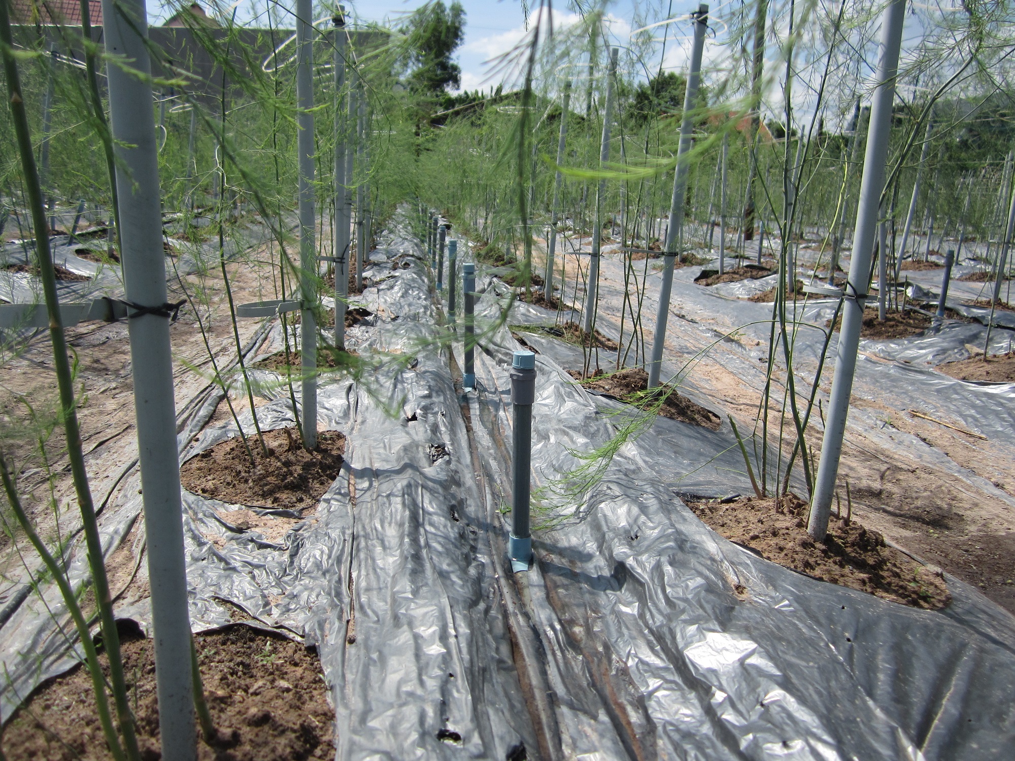 Măng tây xanh được trồng phủ bạt và hệ thống tưới nhỏ giọt