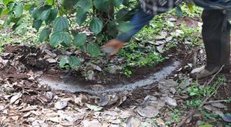 Cách bón: đào rãnh quanh mép tán, sâu 7-10cm, rải phân và lấp đất. Cố gắng hạn chế làm đứt rễ tiêu.