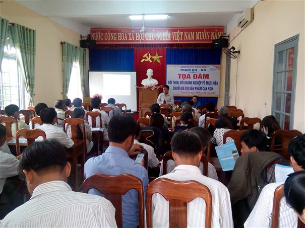 Toàn huyện nông Sơn có gần 900 ha đất canh tác chuyên sản xuất ngô. Tuy nhiên, sản xuất ngô còn nhiều bấp bênh do vật tư đầu vào (giống, phân bón) chưa đảm bảo chất lượng và số lượng, giá cao do chi phí vận chuyển; chưa áp dụng được tiến bộ kỹ thuật vào khâu sản xuất; đầu ra sản phẩm không ổn định và thường bị thương lái ép giá… Buổi tọa đàm được tổ chức nhằm liên kết các khâu sản xuất, hình thành chuỗi giá trị sản phẩm trên cây ngô.