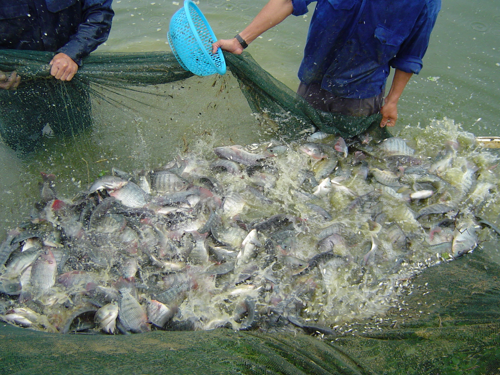 Hình minh họa: Thu hoạch cá Rô phi đơn tính đực tại Phú Ninh