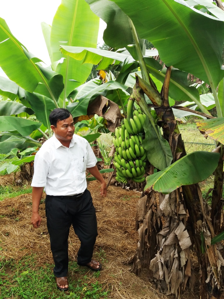 Tác giả với Mô hình chuối nuôi cấy mô